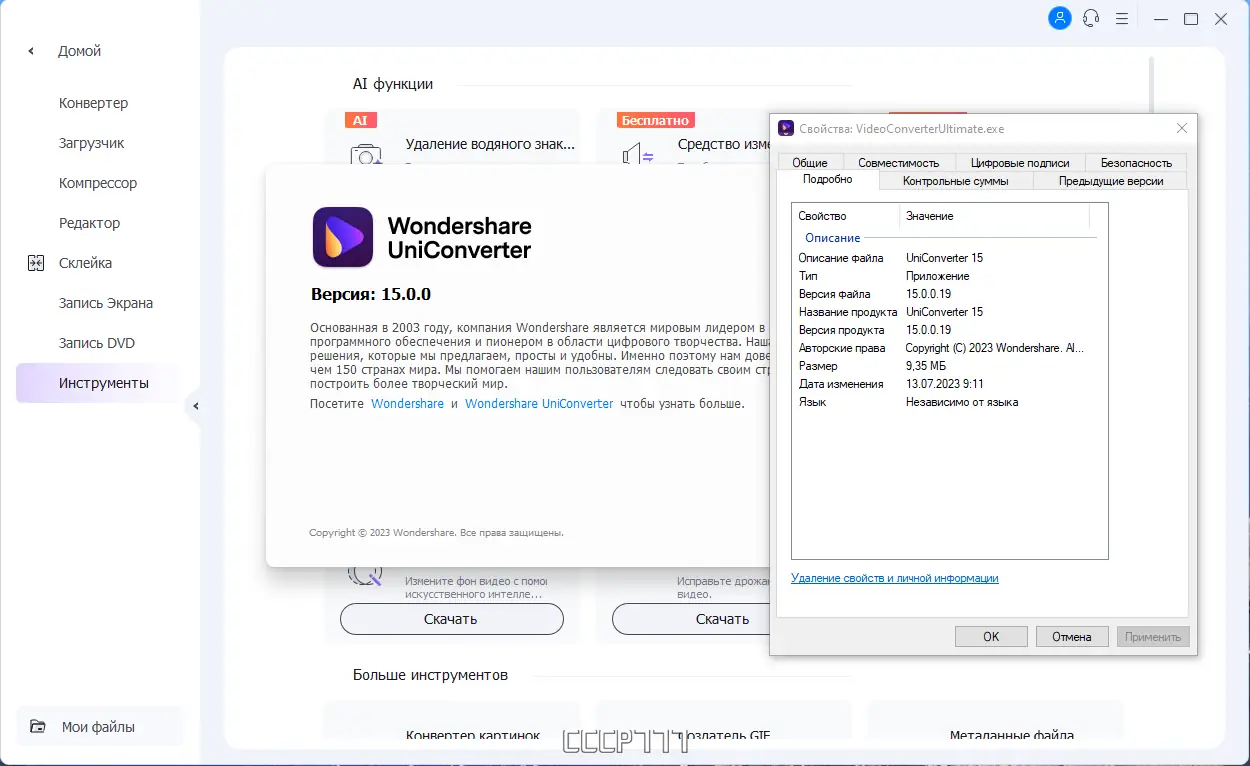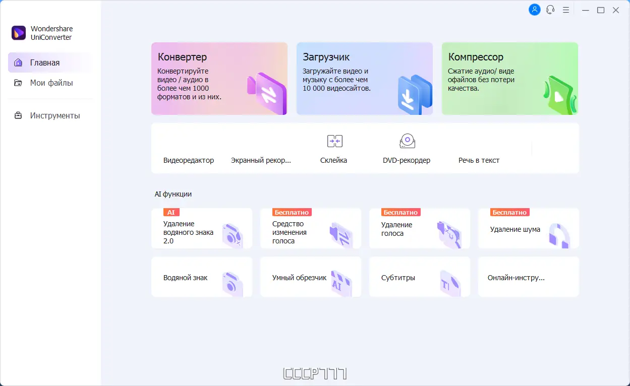 Wondershare UniConverter — это простой в использовании видеоконвертер, позволяющий быстро и качественно обрабатывать видео и аудио файлы. Он поддерживает работу с более чем 159 форматами, обеспечивает конвертацию в 1000 форматов с 30-кратной скоростью без потери качества, а также дополнен широким набором инструментов для редактирования, скачивания, записи на диск и организации мультимедийных файлов. Встроенные функции позволяют создавать DVD-меню, преобразовывать видео из 2D в 3D, а также передавать файлы по Wi-Fi без использования USB-кабеля, что делает программу особенно удобной для домашнего и профессионального использования. Простота интерфейса и высокая производительность делают этот видеоконвертер незаменимым инструментом в арсенале любого пользователя.