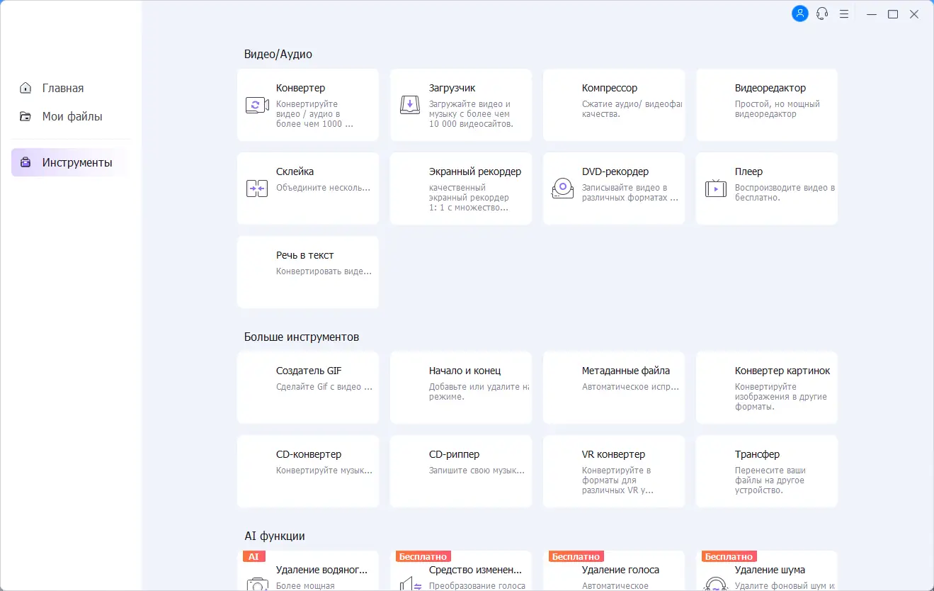 Wondershare UniConverter — это простой в использовании видеоконвертер, который позволяет пользователям легко конвертировать, редактировать, скачивать, записывать видео на диск и просматривать файлы в более чем 159 форматах. Поддержка формата 4K позволяет насладиться изображением высочайшего качества. Программа обеспечивает конвертацию видео в 1000 форматов с скоростью в 30 раз выше традиционных решений, что значительно экономит ваше время. Помимо этого, UniConverter предлагает множество дополнительных функций, таких как редактирование видео, создание GIF, удаление фонового шума или голоса, конвертация из 2D в 3D, с помощью аппаратного ускорения и функций AI, делая работу с мультимедийным контентом максимально эффективной и комфортной.