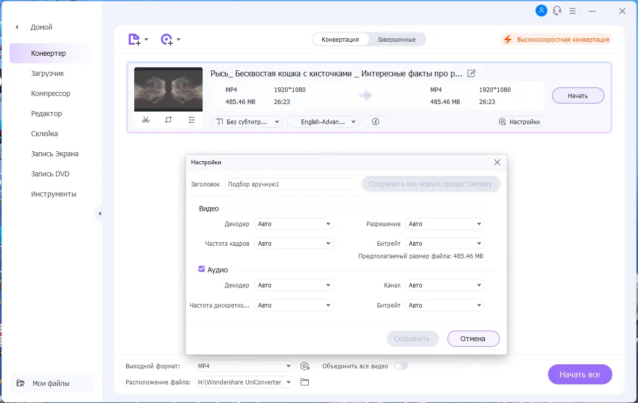 - Множество форматов конвертации и высокая скорость превращения видео;