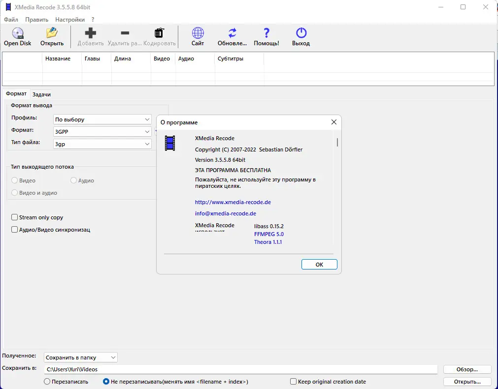 XMedia Recode — мощная программа для преобразования видео и аудио файлов в различные форматы, обеспечивая высокий уровень гибкости и удобства. Предназначена для быстрого и качественного изменения параметров мультимедийных файлов, что делает её идеальным решением для обработки видео под разные устройства и платформы.