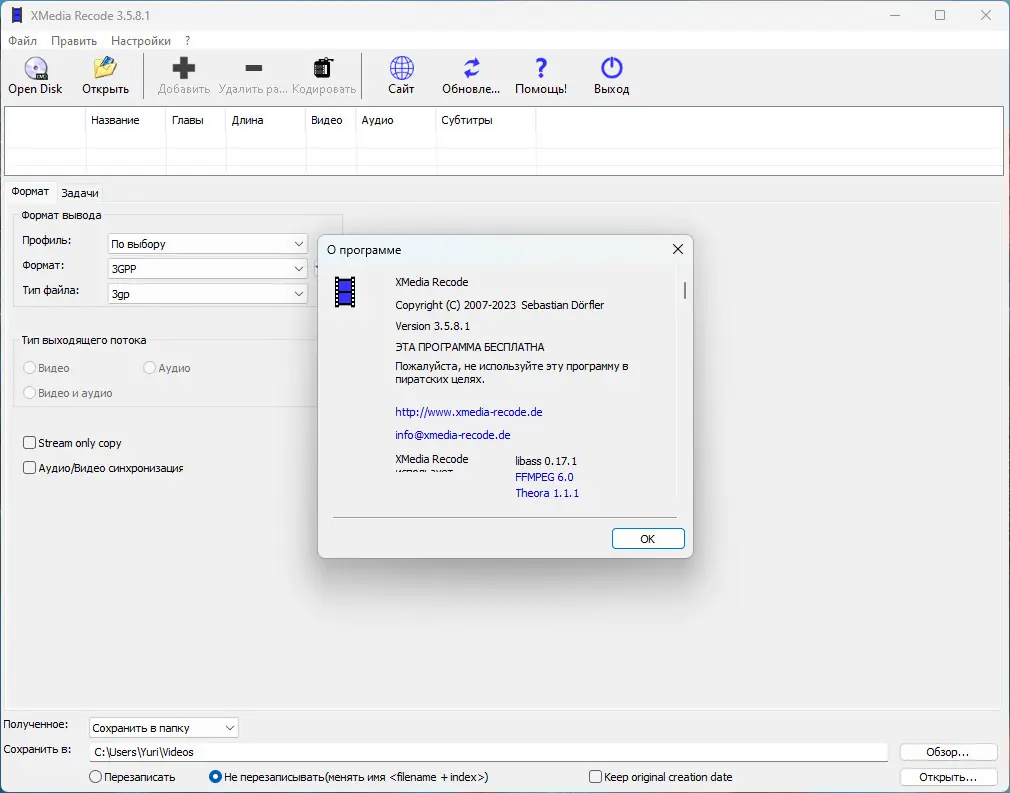 - Поддержка функций Direct Stream Copy и двухпроходного кодирования