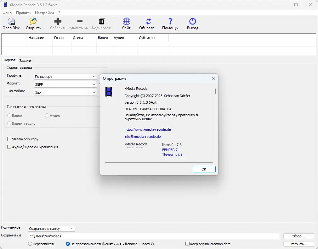 XMedia Recode – это мощная утилита, предназначенная для трансформации видео практически любого формата в совместимый с различными устройствами. Интуитивный и дружественный интерфейс позволяет легко ориентироваться в функционале, а богатый набор инструментов включает изменение размеров кадра, обрезку, коррекцию цвета, нормализацию звука и многое другое. Программа отлично подходит как для простых пользователей, так и для профессионалов, нуждающихся в надежных способах конвертации и редактирования мультимедиа.