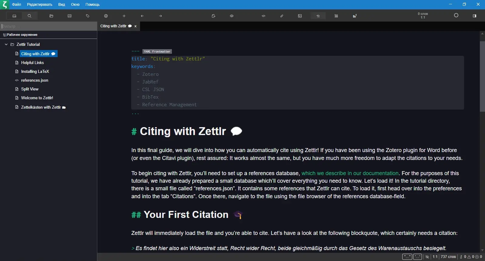 Zettlr сочетает в себе множество современных функций и открытый исходный код, что делает его привлекательным инструментом для профессиональной работы с текстами и научными материалами.
