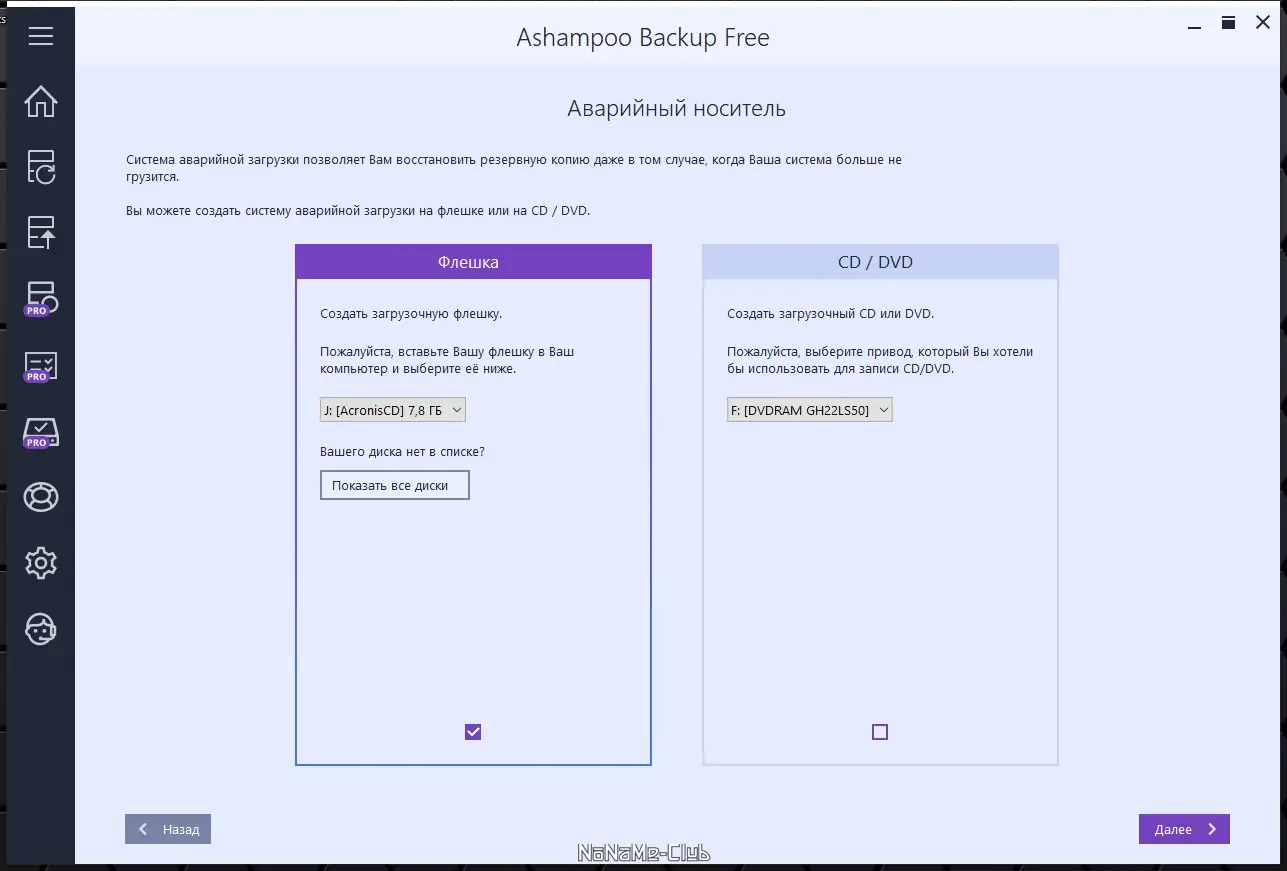 - Поддержка локальных, внешних и сетевых дисков для хранения архива.
