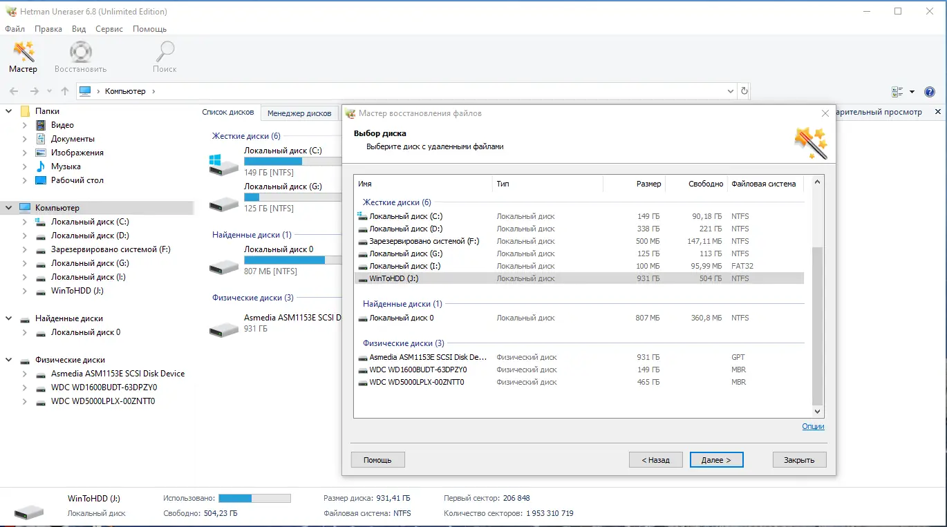Hetman Uneraser — это надежная утилита, которая восстанавливает файлы, случайно удалённые с жестких дисков, карт памяти SD, MicroSD, Compact Flash, USB-флешек и других носителей. Интерфейс программы напоминает окно «Мой компьютер» на русском языке, что делает процесс восстановления максимально удобным: достаточно выбрать нужный файл или папку и нажать кнопку «Восстановить», как в обычном проводнике. Она поддерживает восстановление файлов из корзины и делает этот процесс максимально простым даже для неопытных пользователей.