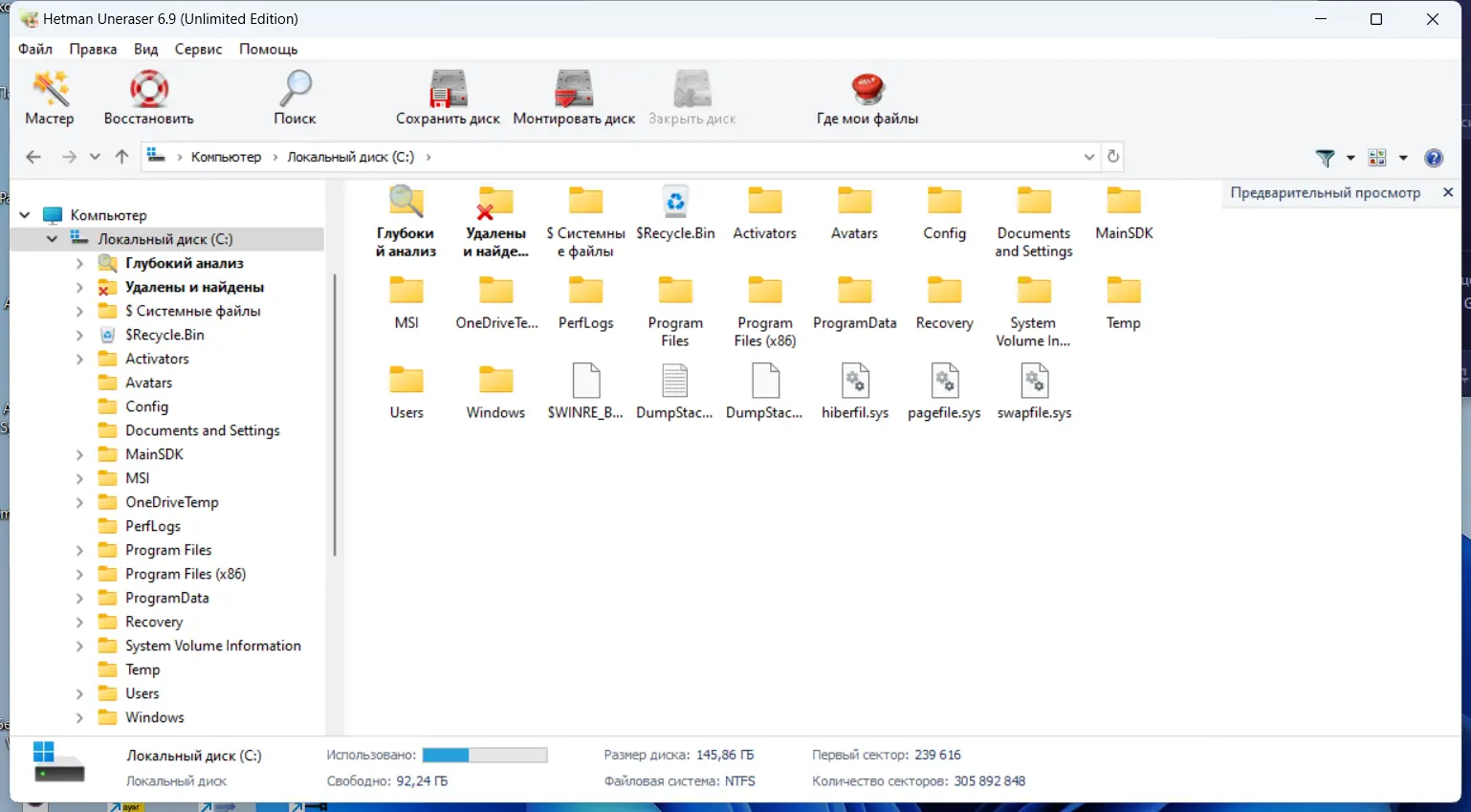 Hetman Uneraser — это мощная утилита, которая восстанавливает удаленные файлы с жестких дисков, карт памяти SD, MicroSD, Compact Flash, USB-флешек и других устройств хранения данных. Интерфейс утилиты напоминает окно «Мой компьютер» на русском языке, что облегчает работу с файлами и папками. Для восстановления достаточно выбрать нужный файл и нажать кнопку «Восстановить» — все так же просто, как в проводнике Windows.