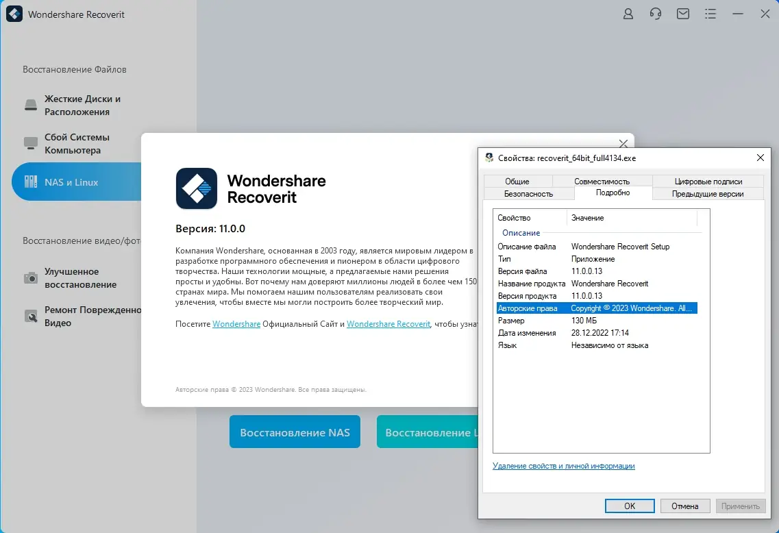 Wondershare Recoverit — это универсальный инструмент для восстановления данных, который обеспечивает восстановление файлов более чем из 1000 форматов, поддерживая широкий спектр файловых систем таких как NTFS, FAT, HFS+ и APFS. Программа способна восстанавливать данные практически с любых устройств хранения — от ПК и Mac (даже с BitLocker или чипами T2, M1) до жестких дисков, SSD, флешек, камер, дронов, автомобильных регистраторов и иных медиаустройств. В числе её преимуществ — высокая вероятность успеха восстановления (95%) и возможность работы с поврежденными файлами и видео в форматах Ultra HD, 4K, 8K. Также реализованы функции восстановления поврежденных видео, создания загрузочной флешки для восстановления системы после сбоя, восстановления данных с NAS, а также поддержки устройств на Linux с файловой системой Ext4.