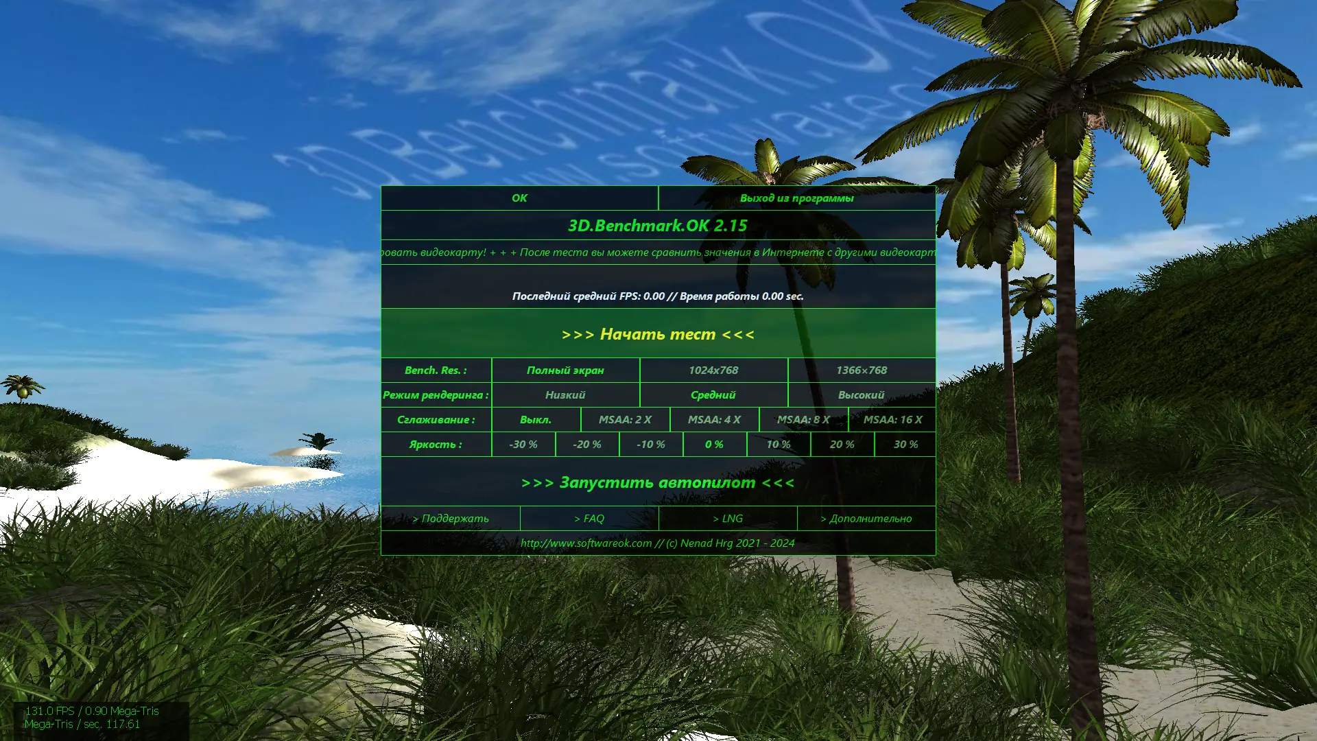 Данное программное обеспечение представляет собой удобный инструмент, разработанный для максимально быстрого проведения бенчмарка видеокарты. Благодаря простому интерфейсу и богатому набору настроек, пользователь может провести тестирование, которое включает проверку сглаживания, моделирование сложных световых эффектов, а также анализ отражений, преломлений и других графических элементов. Возможности автопилота позволяют автоматизировать процесс, обеспечивая непрерывную работу без вмешательства пользователя.