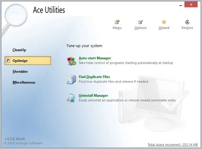 - Управление автозагрузкой и исправление ошибок ярлыков и пунктов меню.