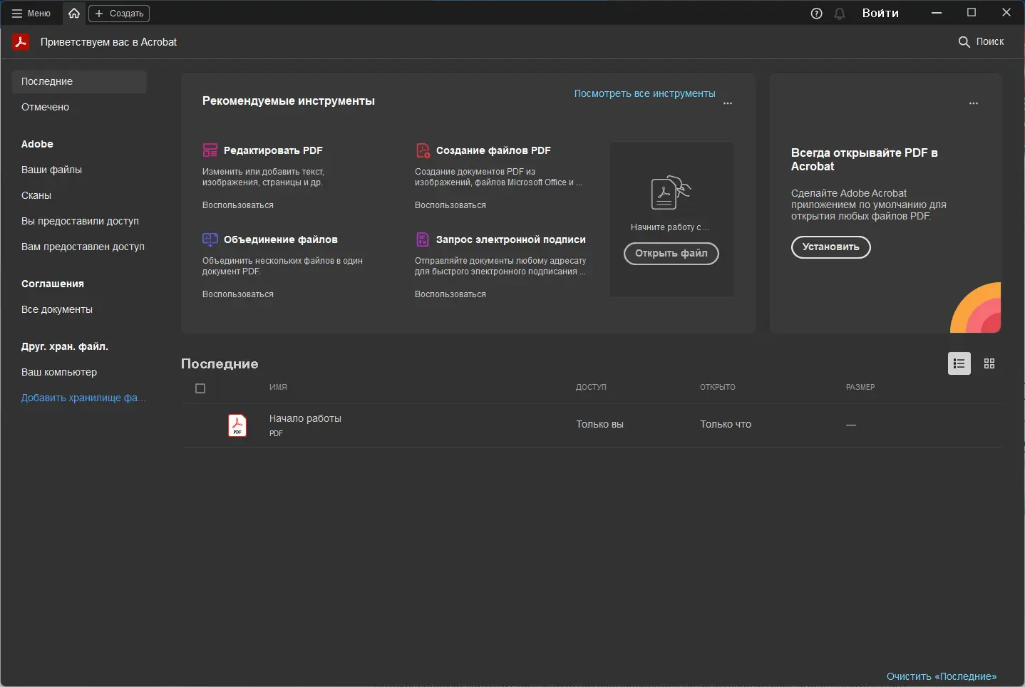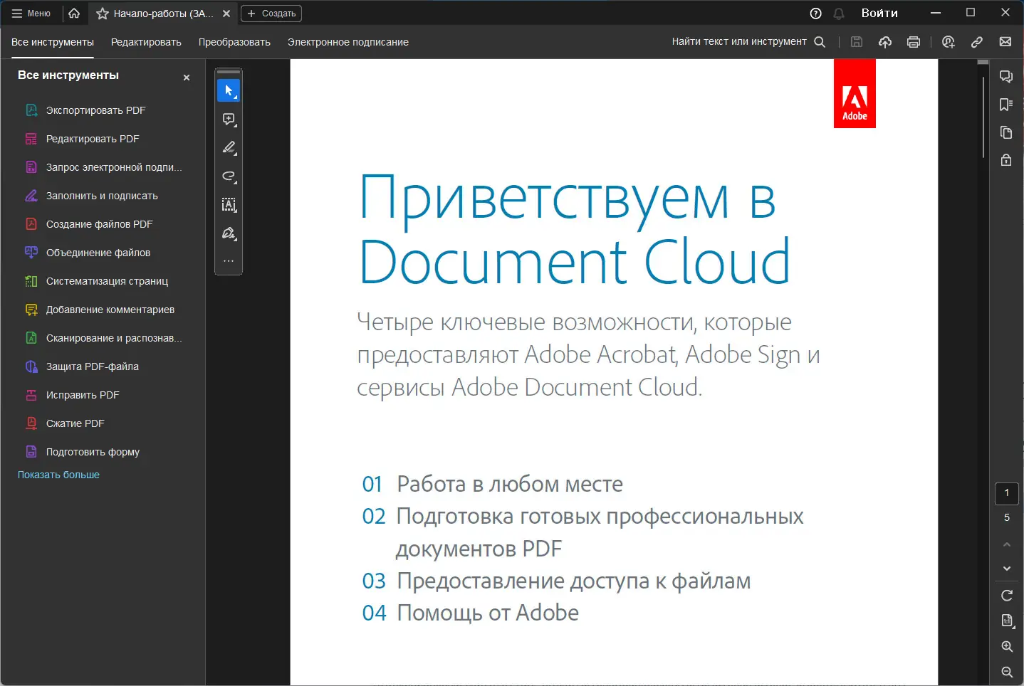 - Интеграция с облачными сервисами Document Cloud для хранения и совместной работы