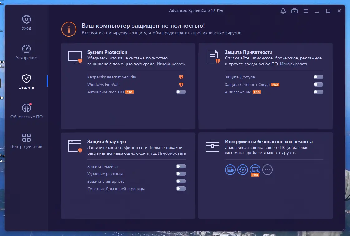 Advanced SystemCare предлагает широкий спектр функций для обслуживания и защиты ПК. Он сочетает простоту использования с мощными возможностями, что делает его привлекательным для широкого круга пользователей.