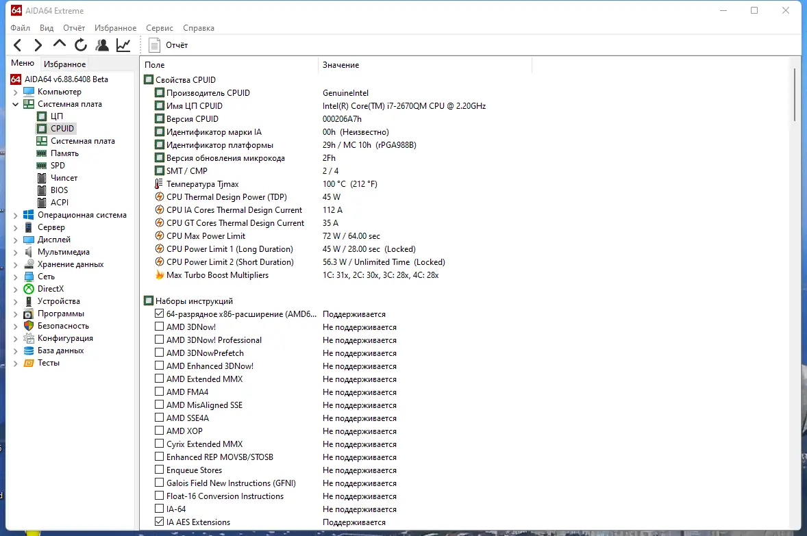 Программа AIDA64 предоставляет подробные сведения обо всем аппаратном и программном обеспечении, установленном на компьютере под управлением операционных систем Windows (от Windows 7 и выше, включая 8/8.1, 10 и 11). Ее функционал включает идентификацию компонентов, тестирование стабильности системы и создание детальных отчетов, что облегчает диагностику и настройку системы. Встроенные модули позволяют провести тестирование и калибровку отдельных подсистем ПК, а расширенные возможности позволяют отслеживать параметры работы устройств в реальном времени.