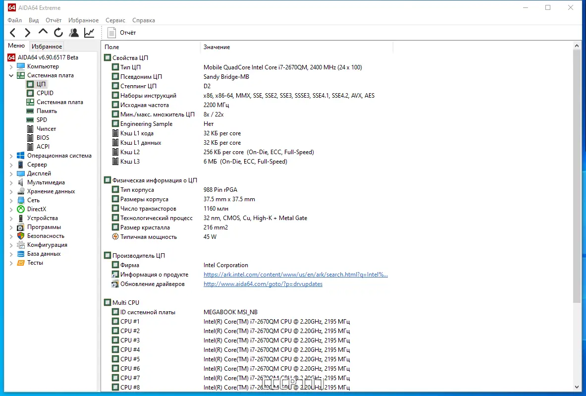 - Точная низкоуровневая информация о материнской плате и центральном процессоре