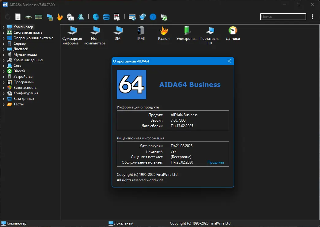 AIDA64 — мощное средство для детальной диагностики и тестирования компонентов ПК под управлением операционных систем семейства Windows. Обеспечивает получение точной, низкоуровневой информации о hardware и software, а также позволяет проводить встроенные тесты и калибровку системных подсистем. Эта программа является незаменимым инструментом для специалистов и энтузиастов, желающих контролировать состояние и параметры своего оборудования.