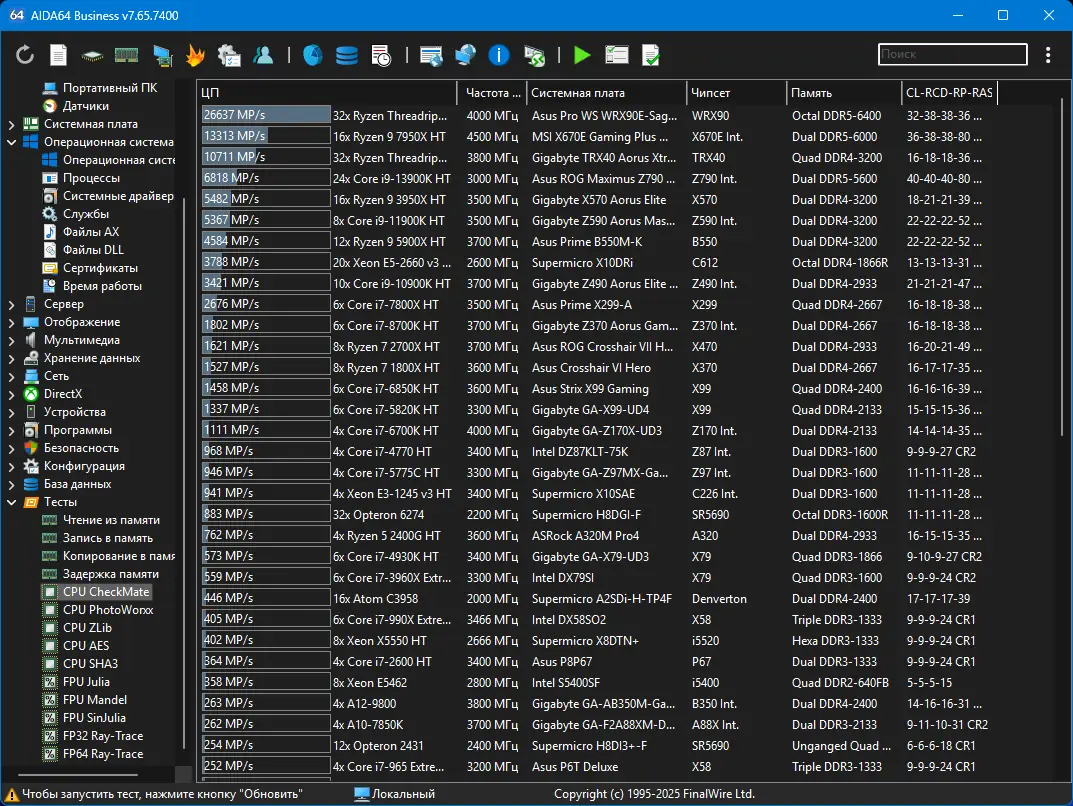 - Тесты стабильности системы и производительности CPU, FPU и памяти