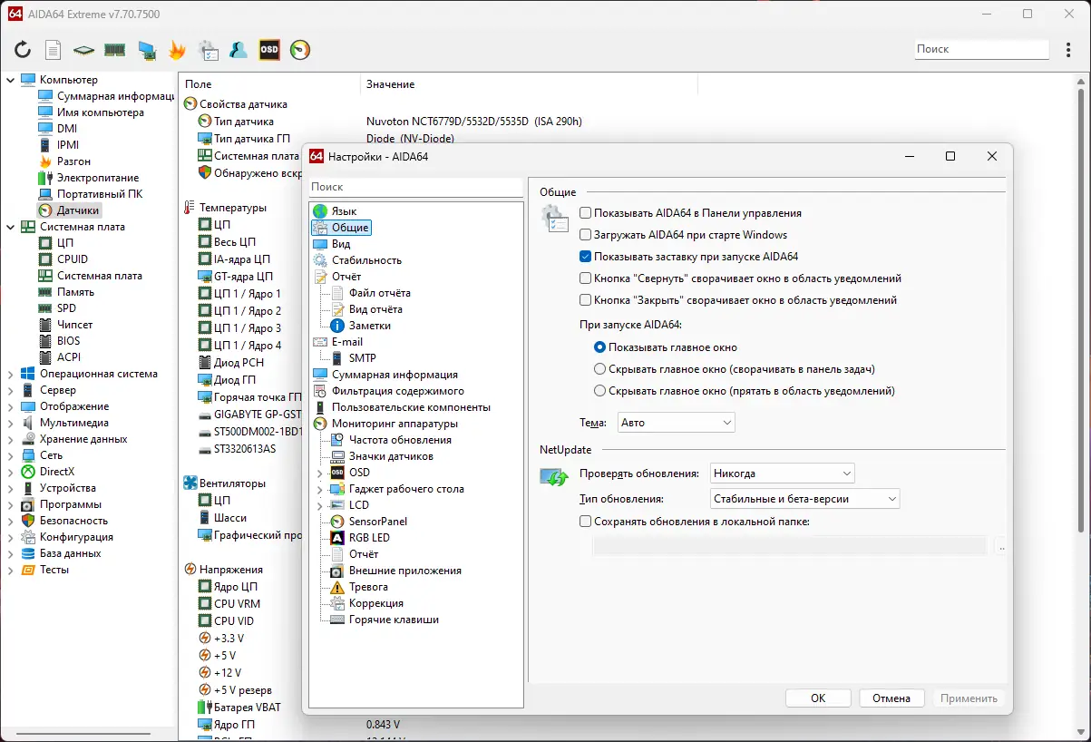 - Поддержка мониторинга аппаратных датчиков и отображение состояния через SensorPanel