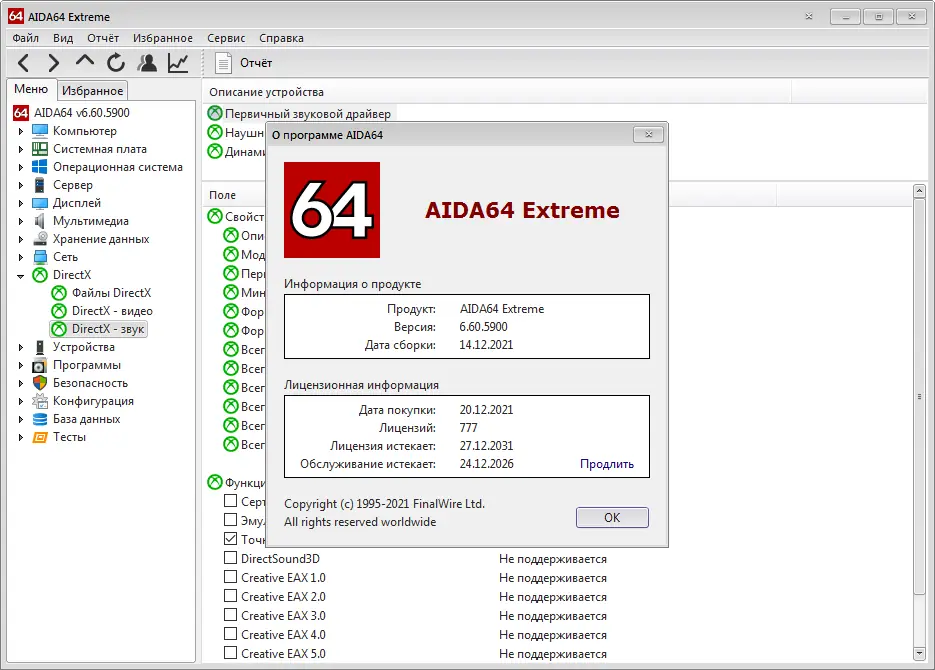 AIDA64 — это мощный инструмент, предназначенный для получения расширенной информации о аппаратном и программном обеспечении вашего ПК. Программа позволяет тщательно анализировать компоненты системы, выявлять и устранять потенциальные проблемы, а также проводить тестирование отдельных подсистем. Встроенные модули позволяют оценить реальную производительность системы, например, CPU, память и диски, сравнить результаты с предыдущими или другими конфигурациями. Кроме того, AIDA64 обеспечивает безопасность системы, предоставляет детальную информацию о программном обеспечении, операционной системе и настройках безопасности, что делает его незаменимым средством для системных админов, оверклокеров и тех, кто следит за состоянием своего оборудования.