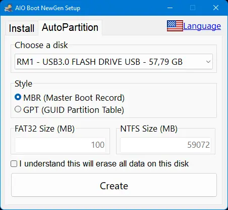 - Поддержка нескольких разделов на USB-накопителе и создание установочных USB с интегрированными драйверами.