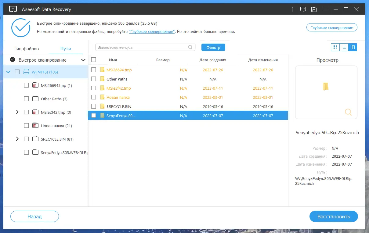- Глубокое сканирование для поиска скрытых и удалённых данных