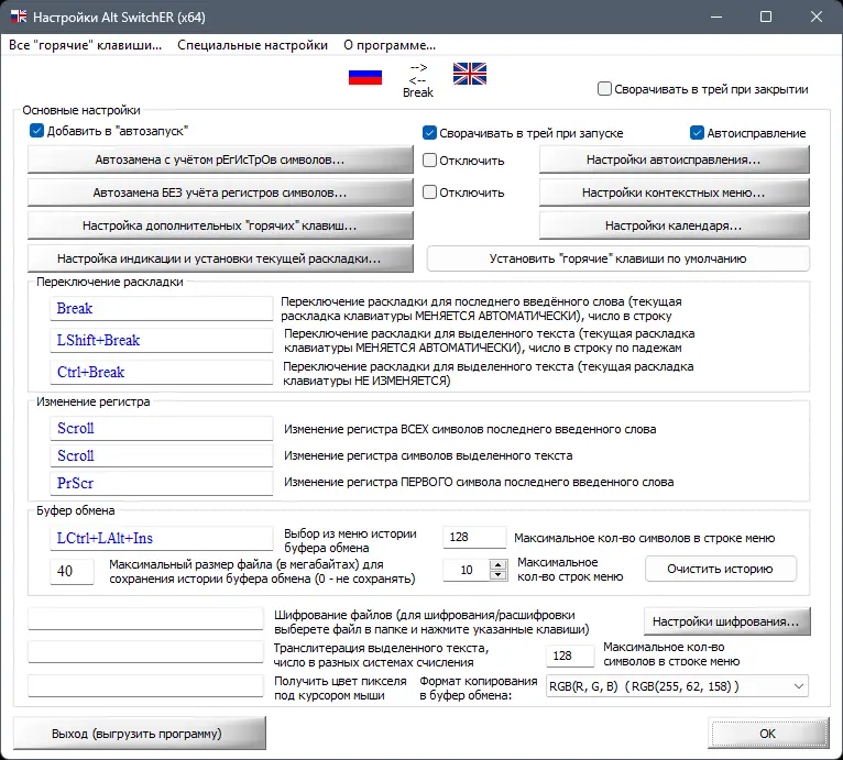Alt Switcher — это универсальная программа для автоматического исправления раскладки клавиатуры, а также расширенных возможностей по управлению цветами, горячими клавишами и автоматизацией в Windows. В отличие от аналогов, она не требует установки, не ведёт логов и не взаимодействует с сетью, что делает её безопасным и удобным инструментом для профессиональных и домашних пользователей. Благодаря автообучению и пользовательским словарям, программа обеспечивает быстрое и точное исправление ошибок, связанных с неправильной раскладкой, а также поддерживает шифрование файлов и папок, вывод цвета под курсором и множество полезных функций.