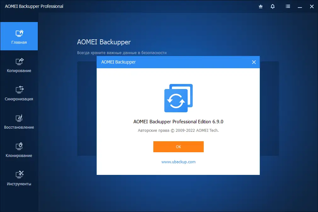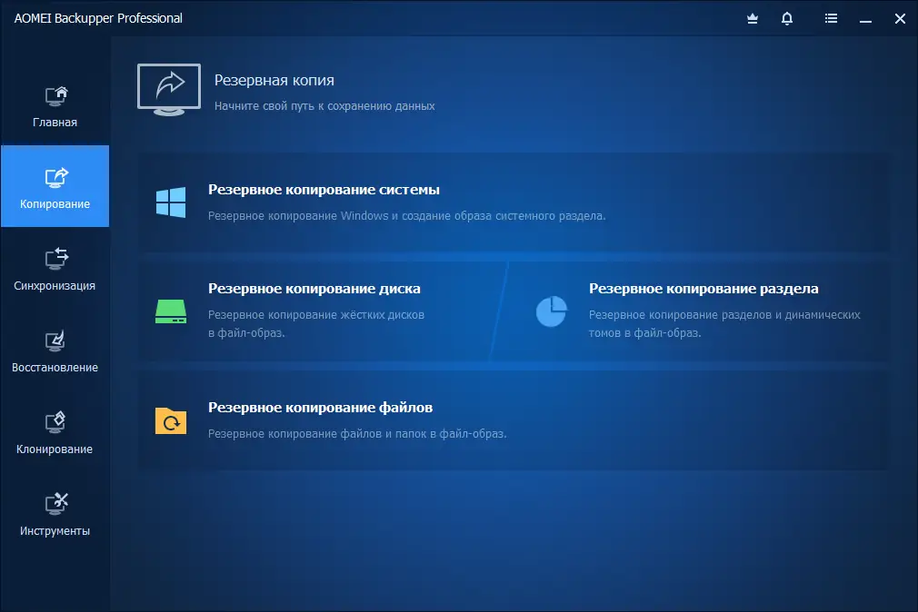 AOMEI Backupper Pro (Professional) – это универсальное решение для резервного копирования и восстановления данных на компьютерах и ноутбуках с ОС Windows. Программа обладает интуитивно понятным интерфейсом, что позволяет легко выбрать необходимые параметры для создания резервных копий, их автоматического планирования и восстановления системы в случае неполадок. Его функциональность охватывает защиту всей системы, отдельных разделов и файлов, а также клонирование дисков и миграцию операционной системы без переустановки.