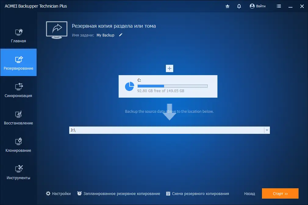 - Поддержка полного, частичного, дифференциального и автоматического резервного копирования