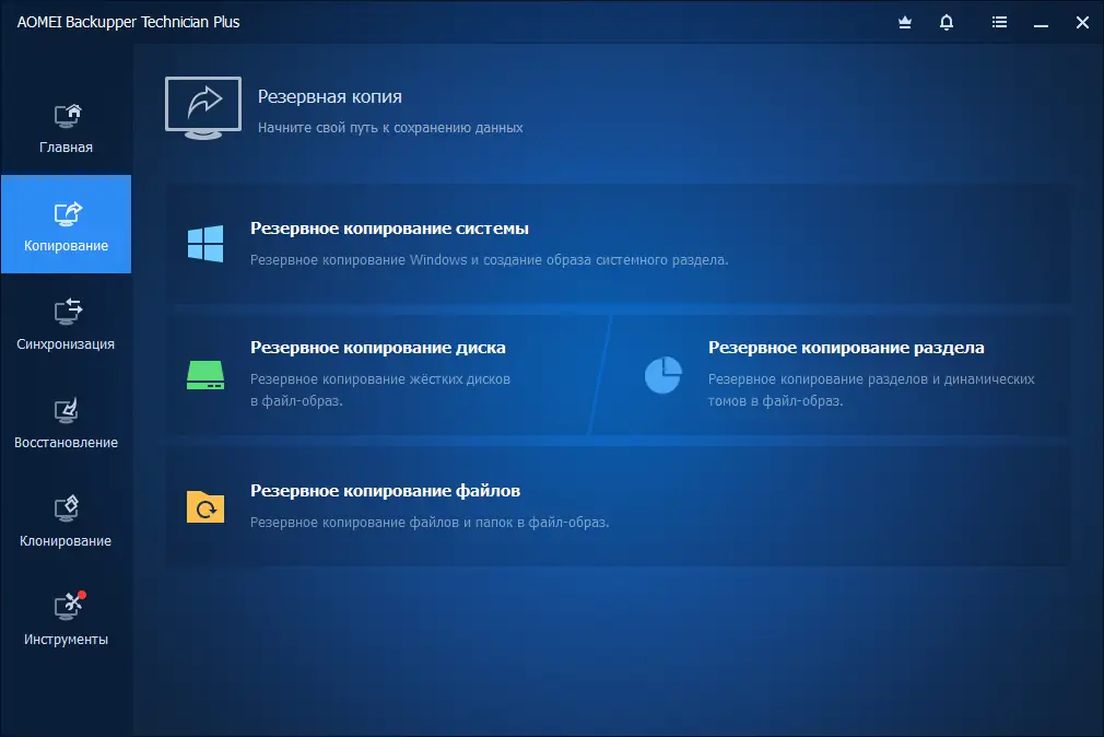 - Резервное копирование и восстановление системы, дисков, разделов, файлов и папок.