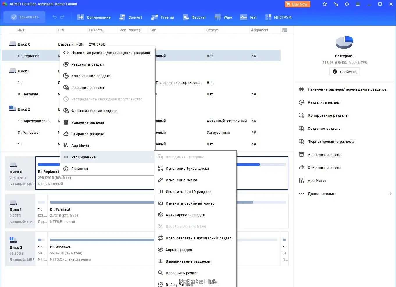 - Бесплатное расширение системных разделов NTFS без перезагрузки компьютера.