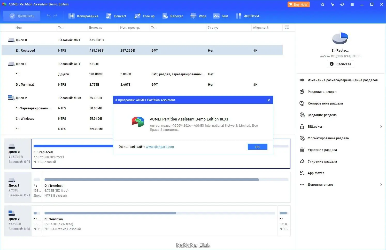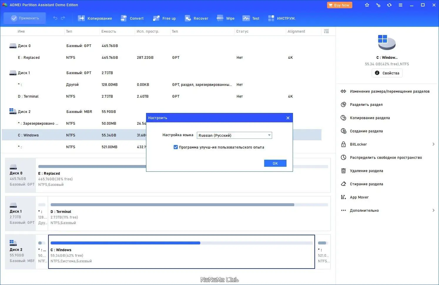 AOMEI Partition Assistant — это бесплатный многофункциональный продукт для управления разделами жестких дисков, который позволяет легко выполнять основные операции по изменению, перемещению, объединению и форматированию разделов без потери данных. Программа подходит для различных версий Windows и поддерживает как 32-, так и 64-битные системы.