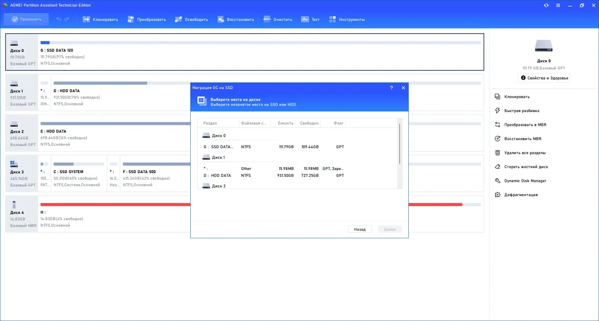 - Миграция ОС на SSD или HDD и восстановление потерянных разделов;