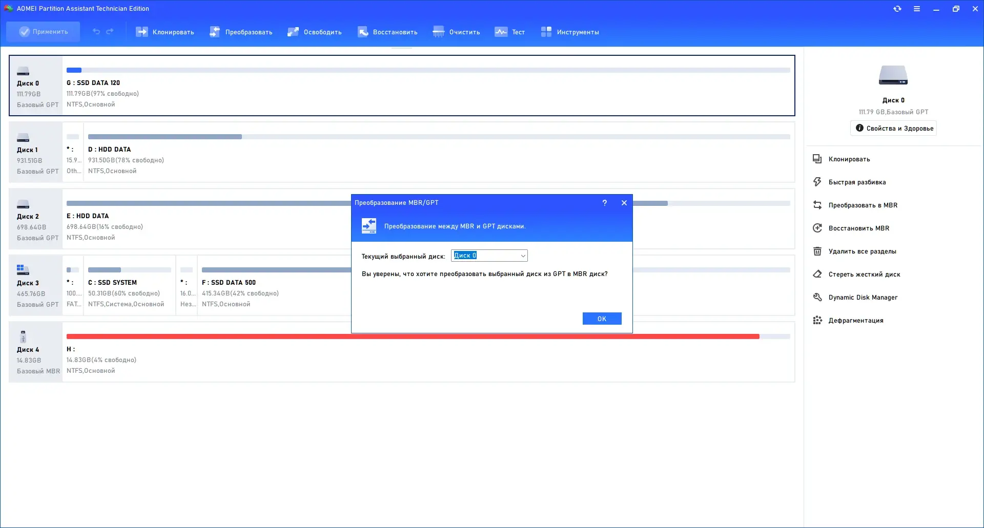AOMEI Partition Assistant — мощное решение для работы с жёсткими дисками и управления разделами, предназначенное для ПК и рабочих станций. Эта программа позволяет легко изменять размер, объединять, разделять и клонировать разделы без потери данных, повышая производительность системы и обеспечивая гибкое управление дисковым пространством.
