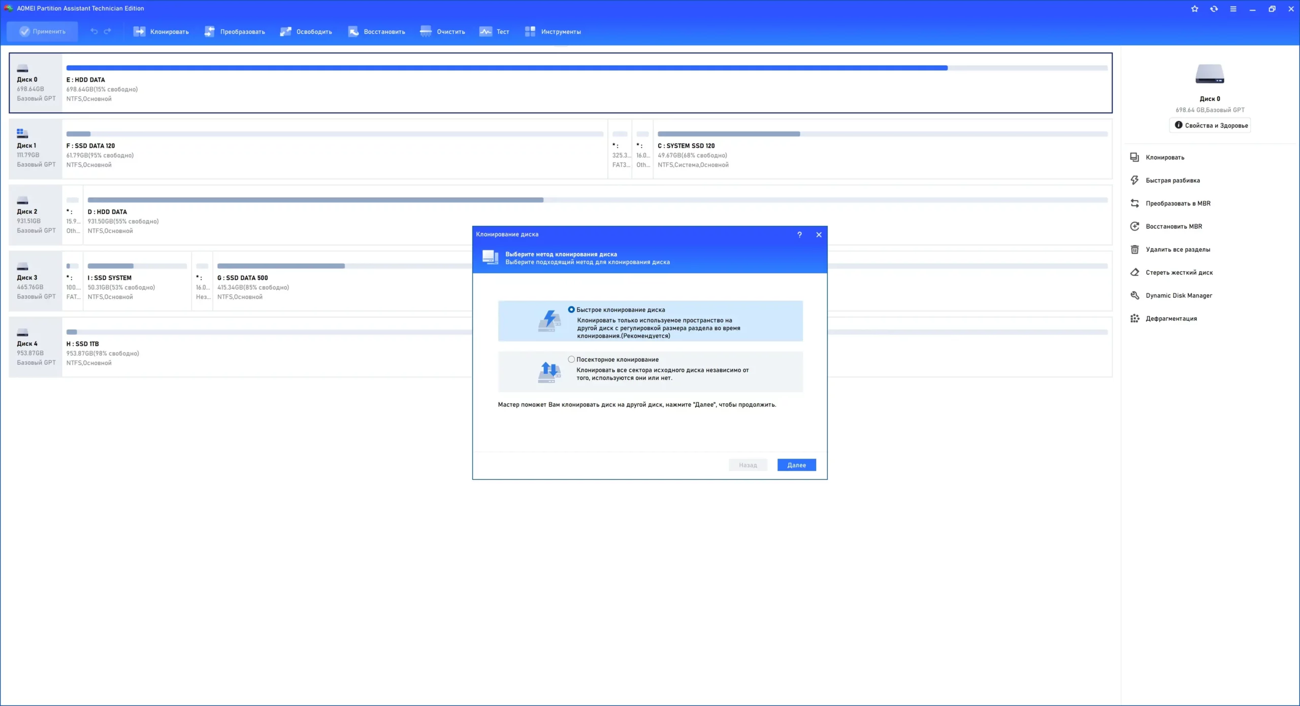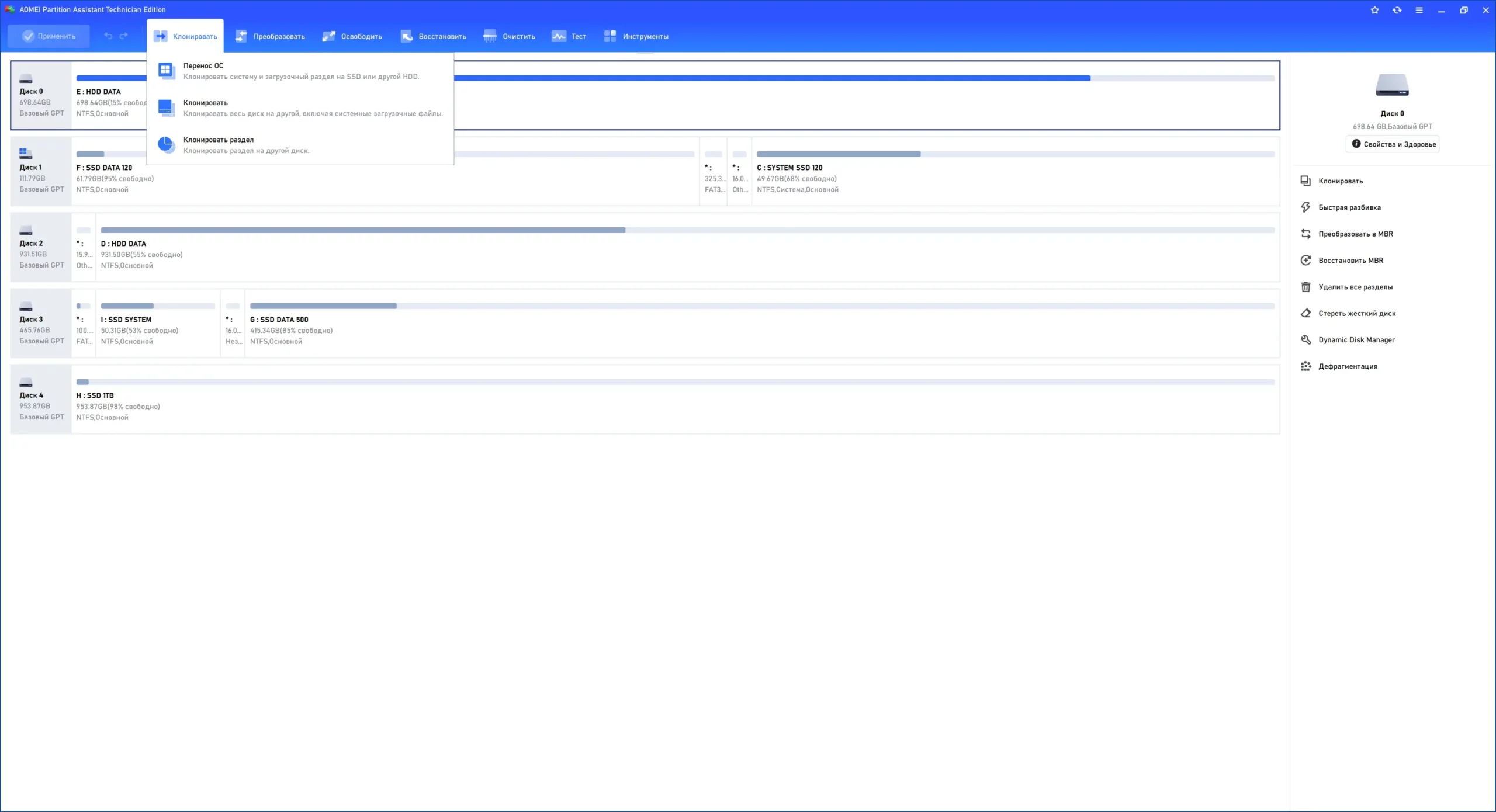 - Копирование, клонирование и миграция разделов для обновления системы или резервного копирования;