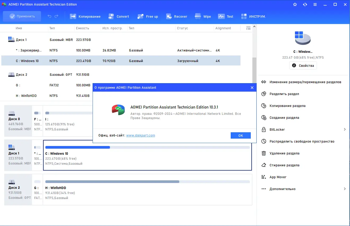 AOMEI Partition Assistant — мощная программа для управления разделами жёсткого диска. Обеспечивает быстрые и безопасные операции по изменению структуры дисков и разделов, повышая производительность системы и позволяя эффективно использовать доступное пространство.