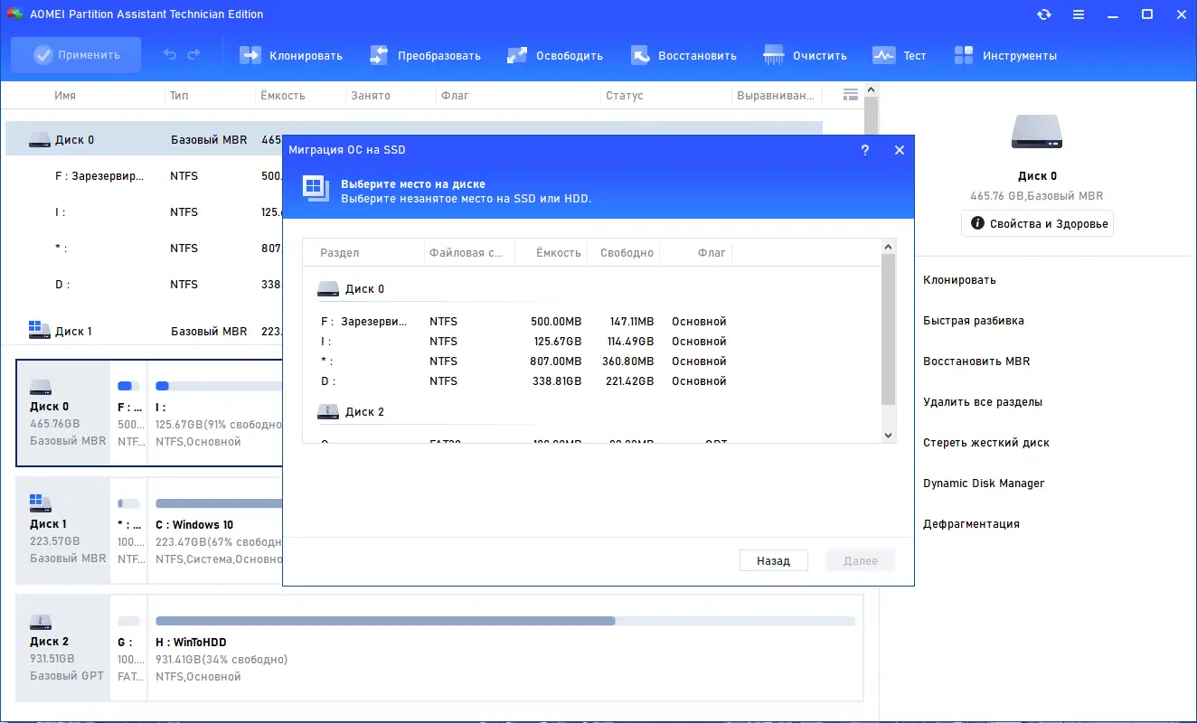 - Миграция ОС на SSD или HDD без переустановки системы;