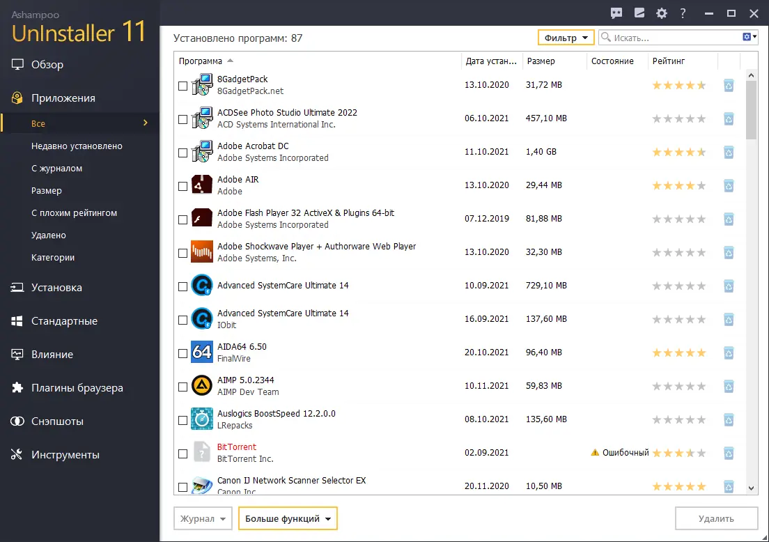 Новая версия Ashampoo UnInstaller заряжена инновационными функциями, которые значительно упрощают процесс удаления приложений и оптимизации системы. В программе реализован уникальный монитор установок, способный автоматически обнаруживать практически все изменения в системе во время установки новых программ, что исключает необходимость ручного вмешательства. Совместимость с Windows 11 обеспечит безупречную работу на новых системах, а расширенные инструменты анализа загрузки и управления программами позволяют значительно ускорить работу ПК и повысить его стабильность. Также реализована автоматическая обработка и удаление оставшихся файлов и данных, что гарантирует чистоту и порядок без лишних усилий со стороны пользователя.