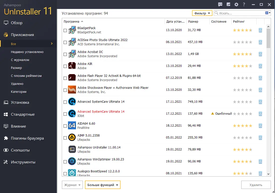 Ashampoo UnInstaller — мощное решение для полного и безопасного удаления программ, расширений браузеров и нежелательных компонентов системы, обеспечивающее чистоту и оптимальную работу ПК.