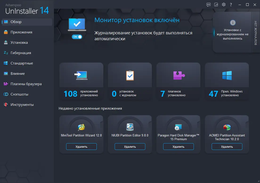 Инструмент отлично справляется с переносом приложений между дисками, позволяет экспортировать списки программ для быстрого восстановления на новых системах, а также обеспечивает глубокую очистку реестра и дискового пространства. С системой автоматического обнаружения установок и мониторингом в реальном времени Ashampoo UnInstaller делает управление программами максимально простым и безопасным.