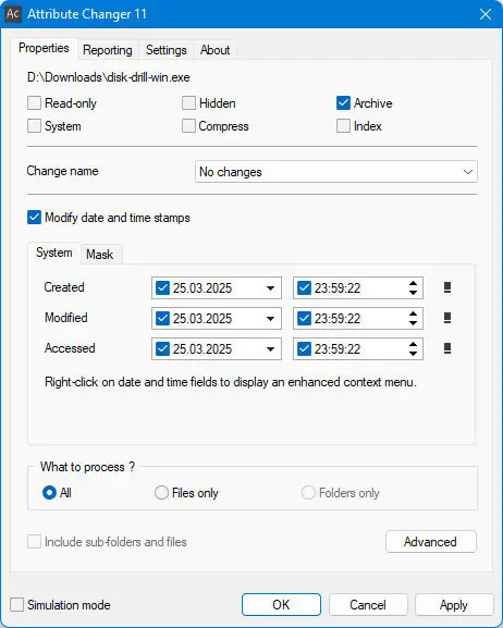 Эта программа предназначена для тех, кто нуждается в простом, но мощном инструменте для управления атрибутами файлов и папок. После установки она добавляется в контекстное меню проводника Windows, что позволяет легко изменять такие атрибуты, как только для чтения, скрытый, архивный, системный и другие. Возможно изменение даты создания, последней модификации и доступа к файлу или папке, а также синхронизация метаданных цифровых фотографий. Поддержка пакетного режима делает работу с несколькими файлами одновременно быстрой и удобной. Для пользователей, нуждающихся в портативной версии, доступен вариант без установки, который можно скачать и использовать сразу.