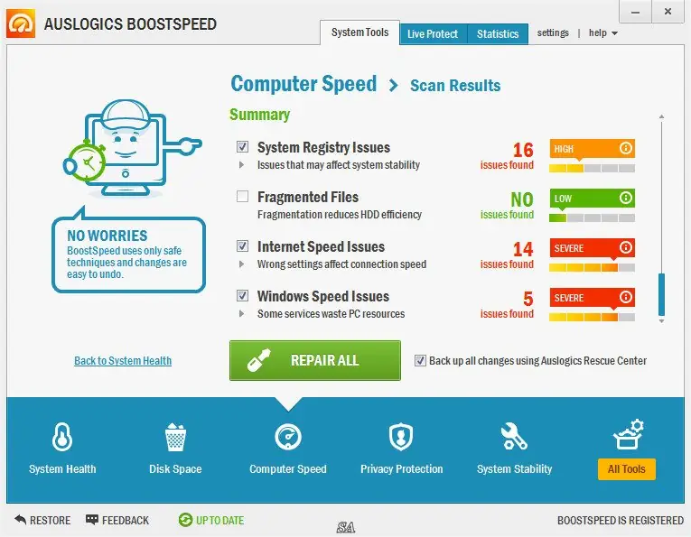 AusLogics BoostSpeed — это мощный набор инструментов для оптимизации и настройки вашей операционной системы, позволяющий повысить её производительность и стабильность. С помощью данной программы вы сможете легко очистить систему от мусора, исправить ошибки реестра, дефрагментировать диски и реестр, а также настроить интернет-соединение для максимально быстрого доступа. Ее интерфейс создан с учетом современных требований и позволяет управлять всеми функциями всего за несколько кликов.