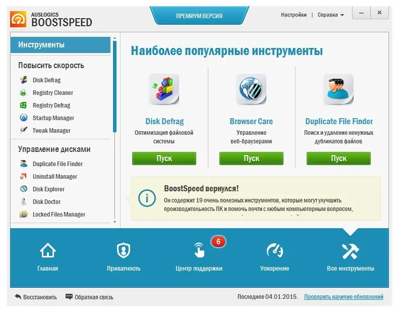 Использование данного программного комплекса позволяет существенно повысить быстродействие и стабильность вашей системы, избавившись от накопившегося мусора и ошибок. Основное преимущество — универсальность и широкий функционал для различных задач обслуживания ПК.