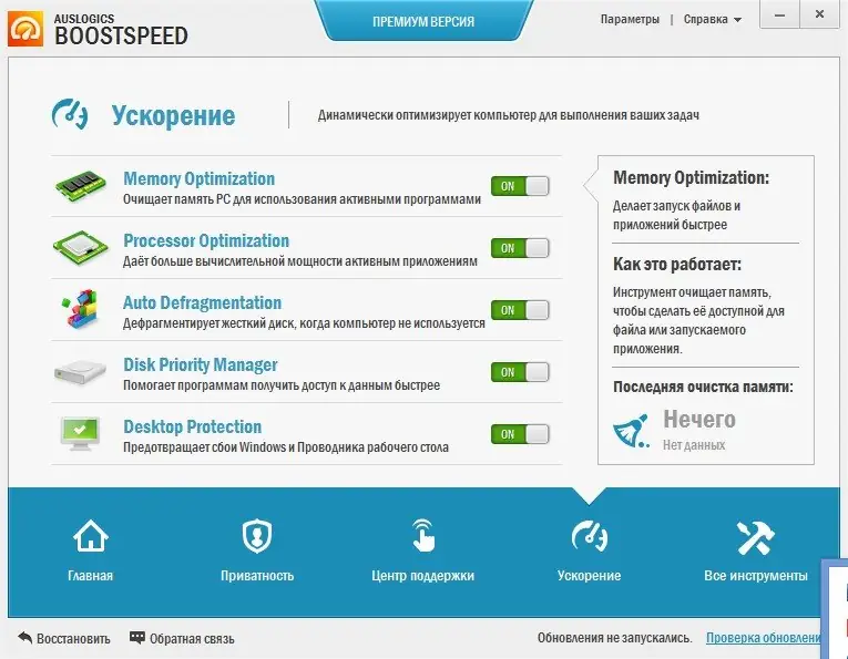 AusLogics BoostSpeed — это мощная утилита, которая помогает улучшить работу компьютера, автоматически проверяя системные параметры и предлагая оптимизации. Встроенный инструмент System Adviser предварительно проводит ряд тестов, используя пятьдесят различных критериев, и формулирует рекомендации по их улучшению. В режиме реального времени программа отслеживает состояние системы и информирует пользователя о возможных способах повышения скорости, безопасности и стабильности работы ПК. Удобный интерфейс и автоматизированные функции делают этот инструмент незаменимым для тех, кто стремится держать систему в отличной форме.