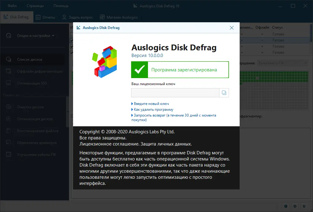 - После завершения установки или распаковки запустите программу и выполните активацию с помощью встроенных методов или ключей. Также рекомендуется выполнить проверку диска и очистку временных файлов перед началом дефрагментации.
