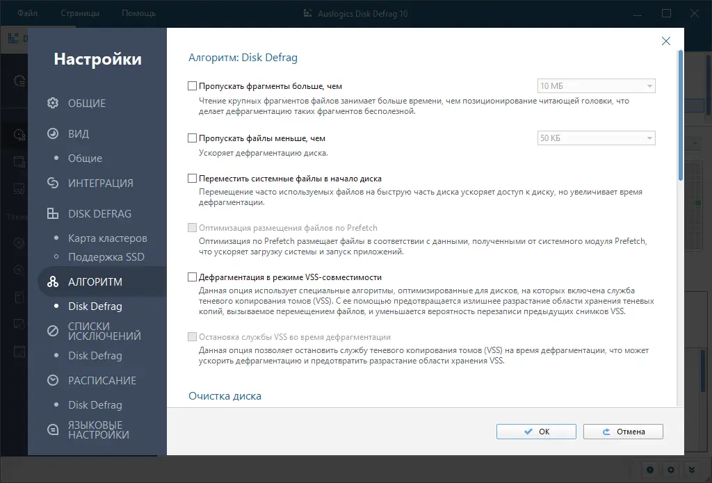 - Некоторые расширенные алгоритмы могут увеличить время обработки больших дисков