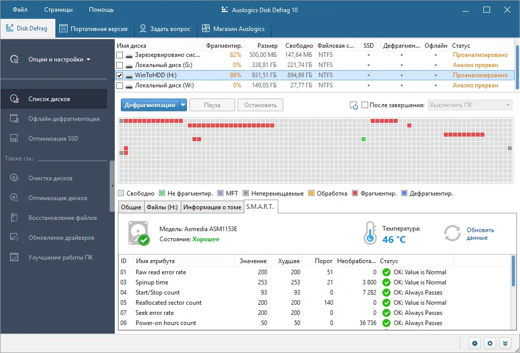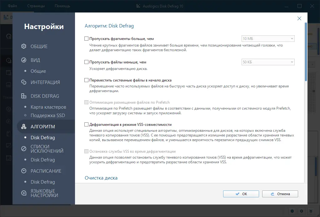 - Высокая скорость дефрагментации по сравнению с аналогами.