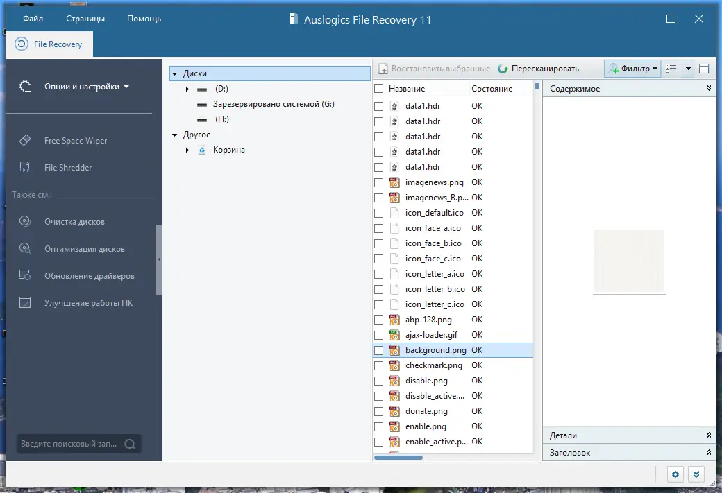 - Безопасное удаление файлов с помощью функции File Shredder и очистка дисков