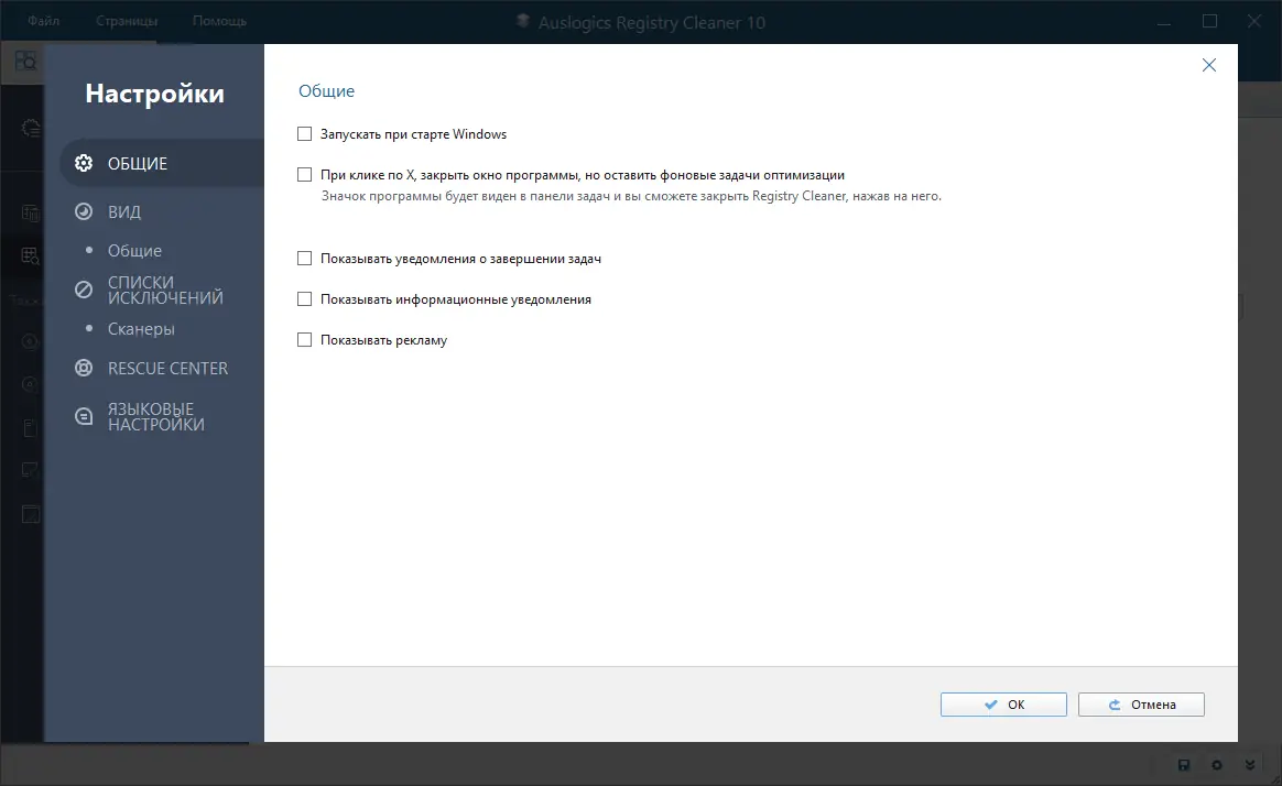 - Очистка реестра для ускорения работы компьютера