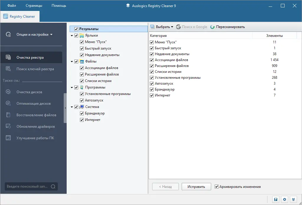 - Исправление ошибок реестра для предотвращения сбоев системы