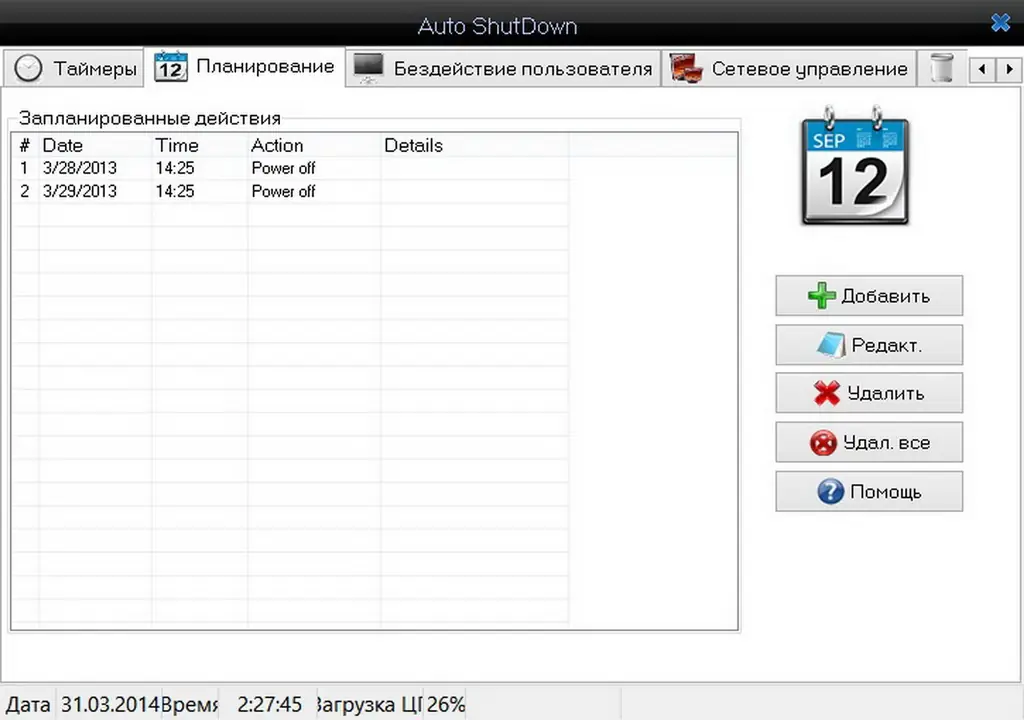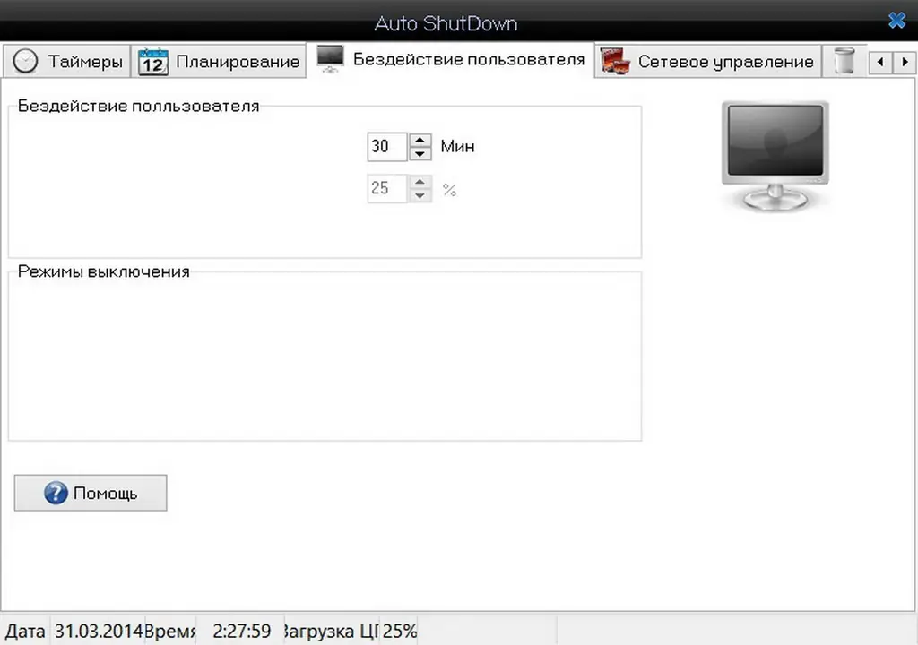 Auto ShutDown — это бесплатная программа для автоматического выключения компьютера по заданному графику или при определённых условиях, таких как долгое отсутствие за ПК или низкая загрузка процессора. Она поддерживает все актуальные версии Windows и работает как с 32-, так и с 64-битными системами, обеспечивая удобство в использовании и гибкие настройки автоматизации.