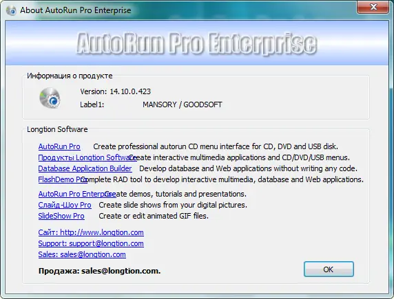 - Возможность показа лицензионного соглашения до запуска контента, защита диска паролем или по ограниченному числу запусков.