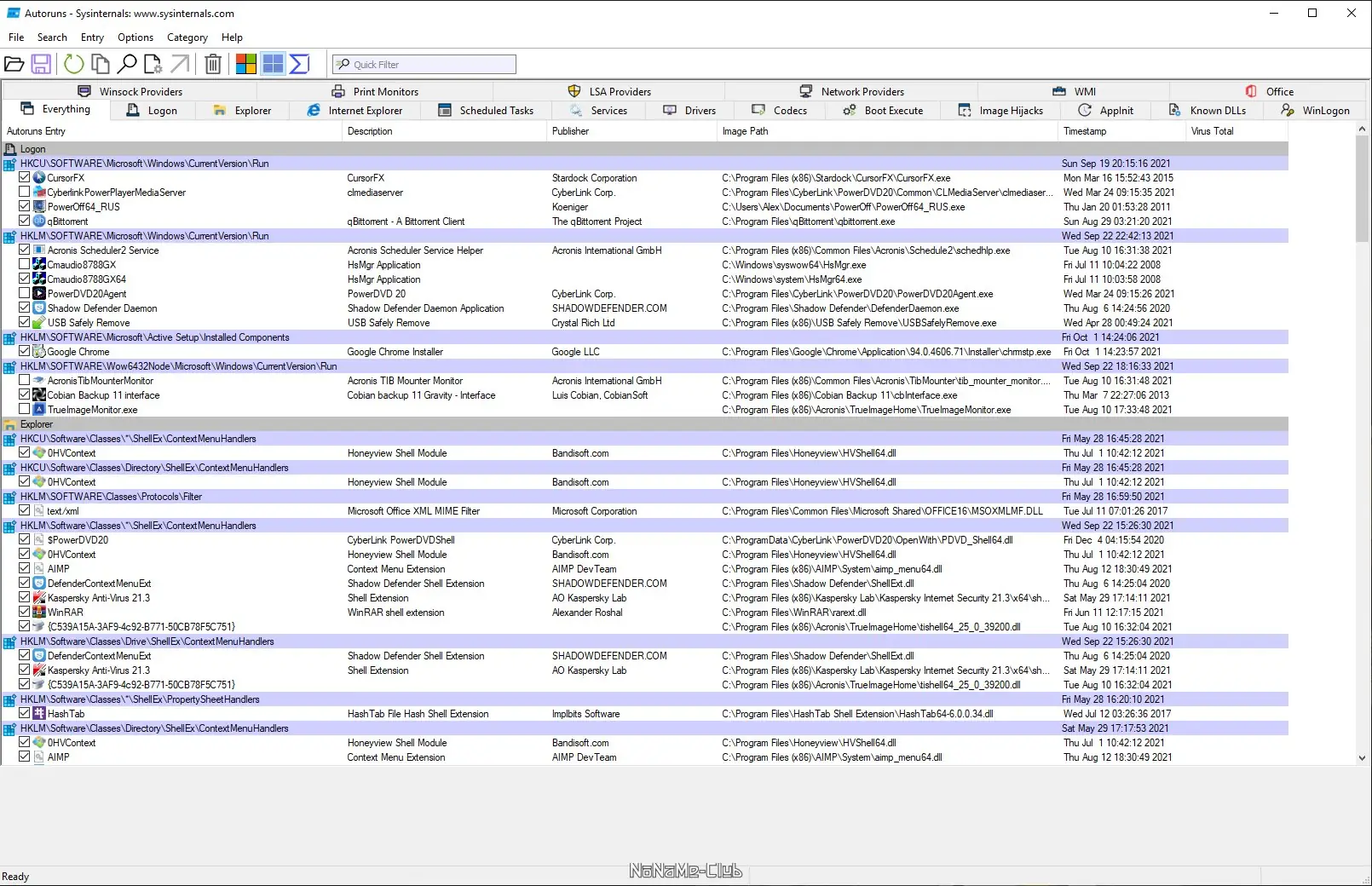 AutoRuns — бесплатная утилита для Windows, предназначенная для контроля автозагрузки программ, драйверов и системных компонентов. Это мощное решение, позволяющее управлять всем, что запускается при старте системы и входе пользователя, обеспечивая повышенную безопасность и оптимизацию работы компьютера.